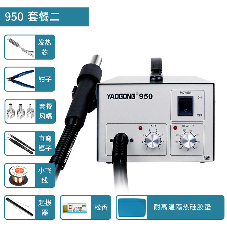 Yao worker 950 welding bench hot wind gun disassembly and welding automatic dormancy intelligent thermoregulation soldering iron High power digital display bracket