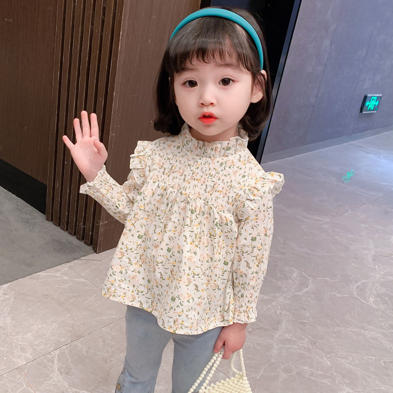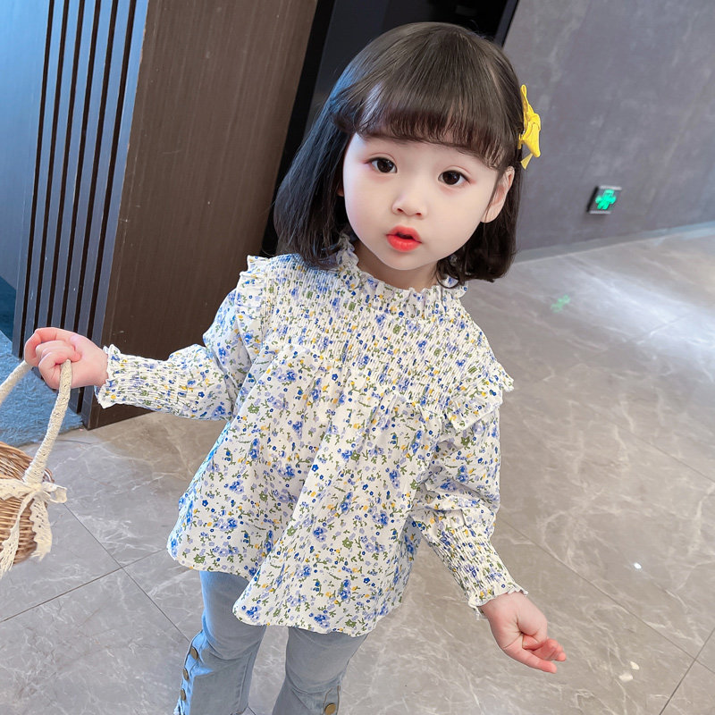 Girls' shirt 2022 spring new children's Western style floral long-sleeved shirt baby Korean version top baby shirt