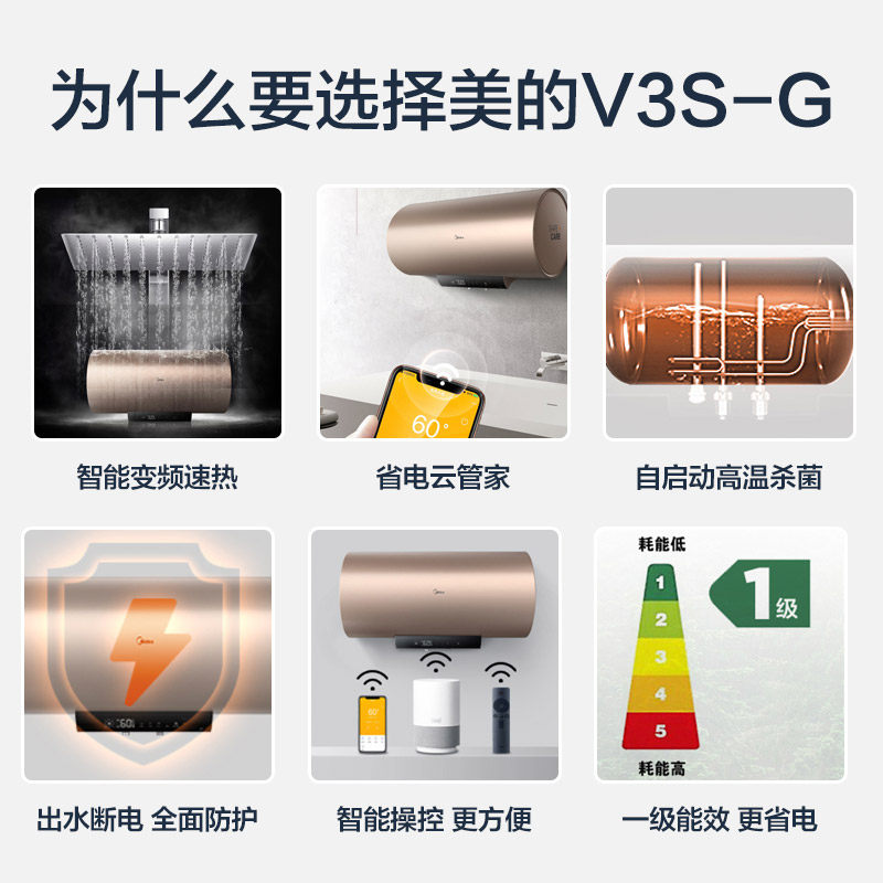 Beauty electric water heater Home 60 80 liters water storage frequency conversion smart water power cut off makeup room bathing V3S-G