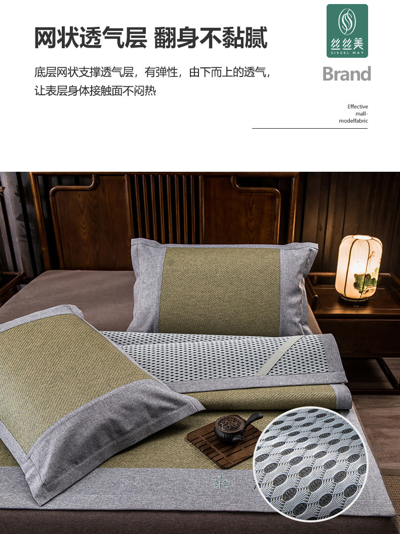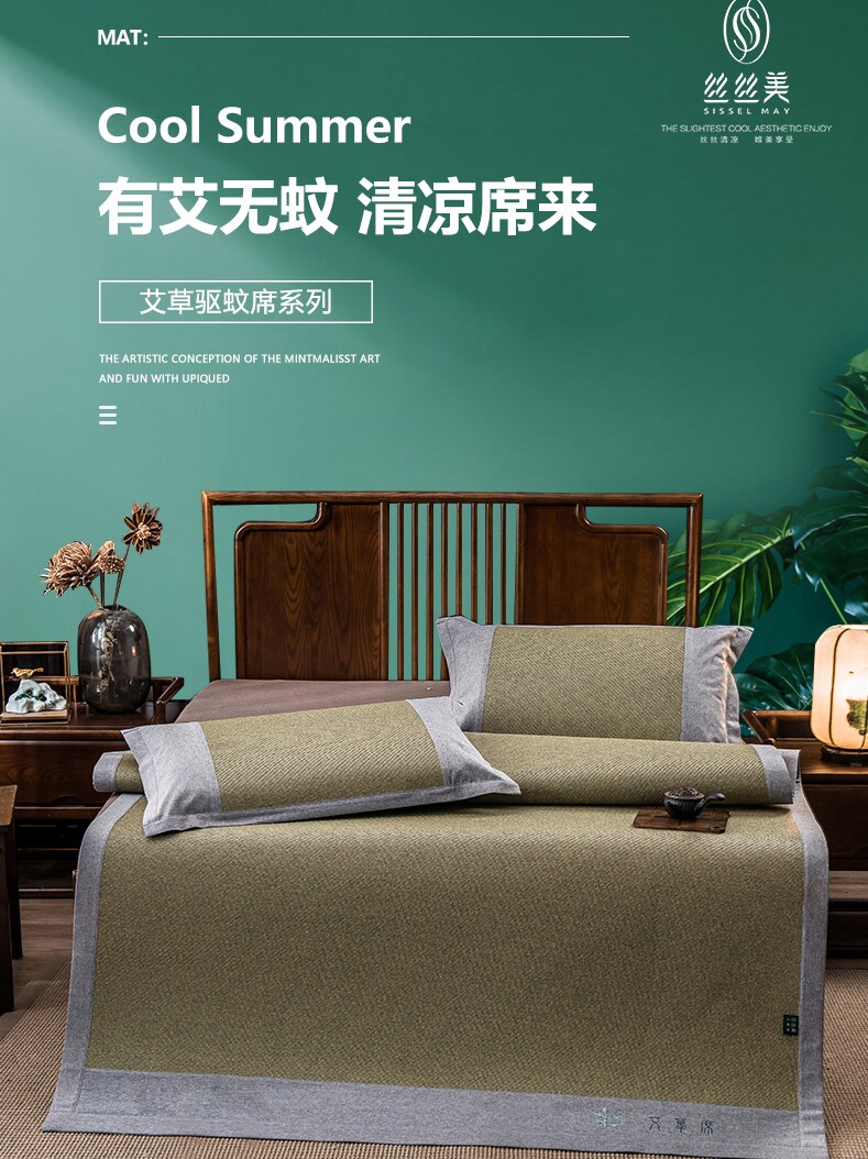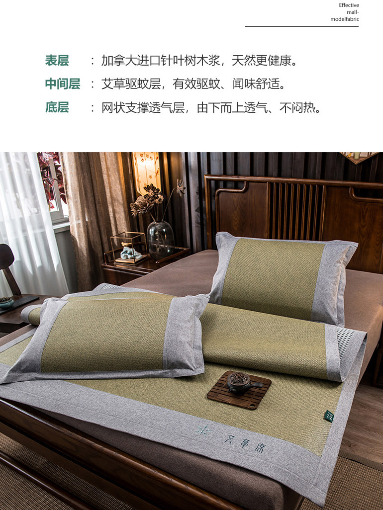 Sisimei cool mat 1 8m wormwood mosquito repellent rattan seat three-piece set folding summer air conditioner 15m student ice silk grass mat