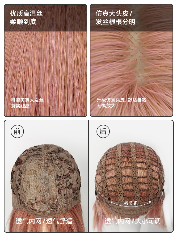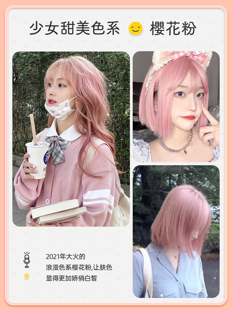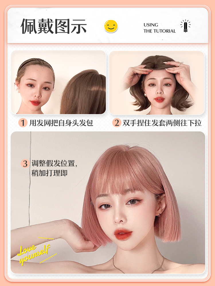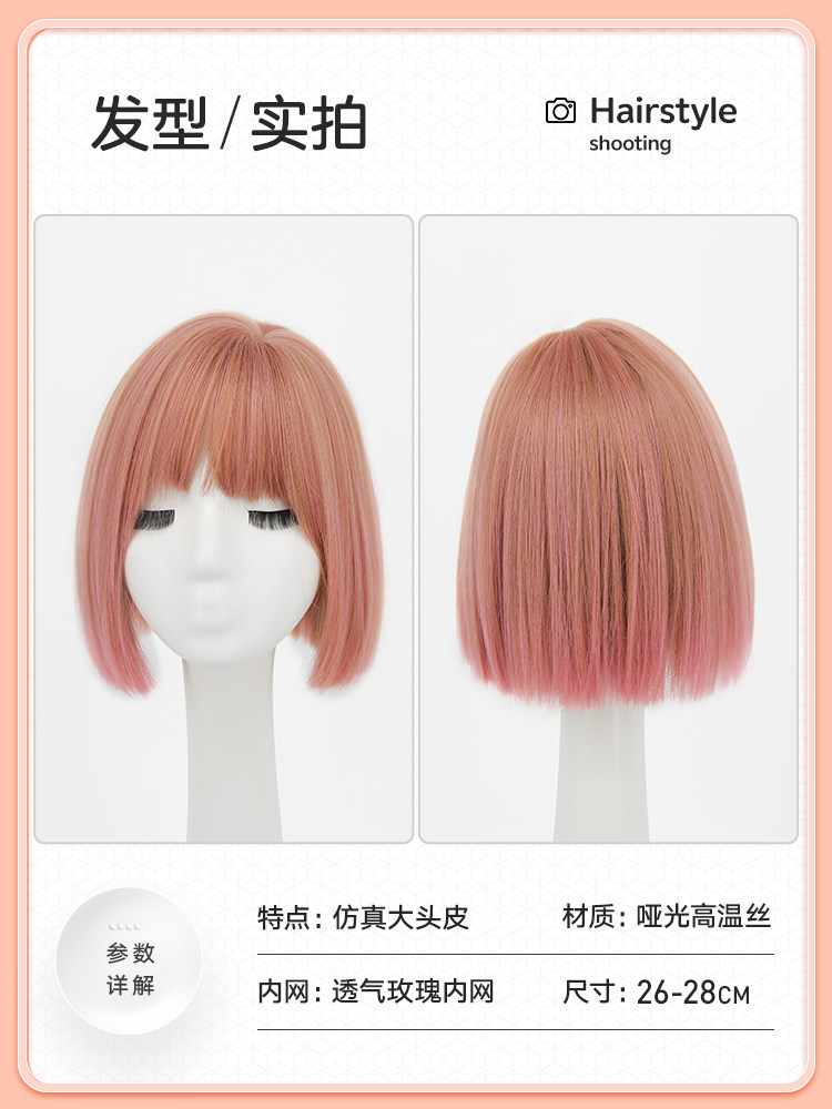 Wig female short straight hair cherry blossom pink cos Japanese bobo head lolita Lolita natural girl full headgear