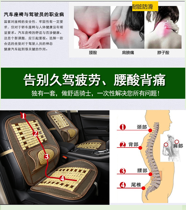 Car bamboo piece waist guard cushion car seat breathable driver car waist cushion summer backrest support cushion