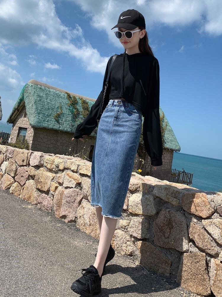 Small Sub Cowboy Half Body Dress Woman Medium Long Version Spring Summer 2022 New High Waist Version 100 Hitch Hip Step Skirt