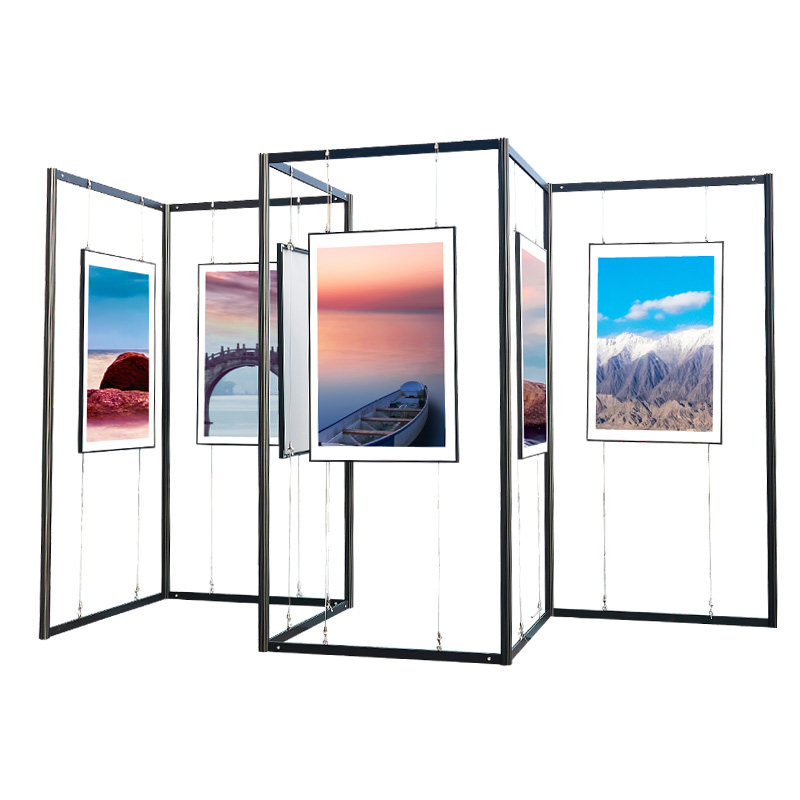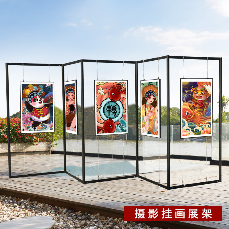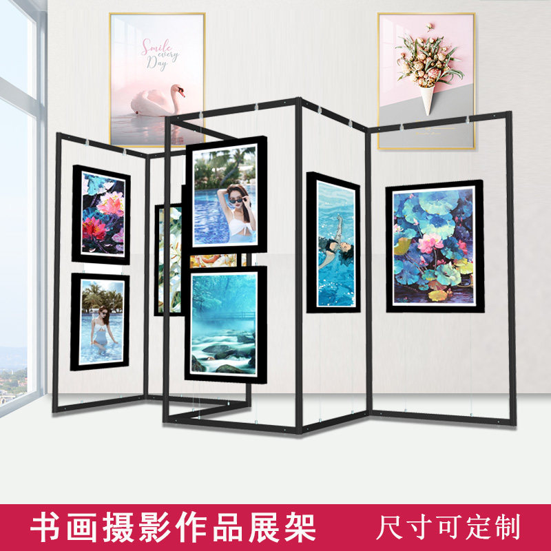 Black octagonal prism calligraphy and painting exhibition board Calligraphy works screen photography display board Kindergarten art calligraphy and painting display rack