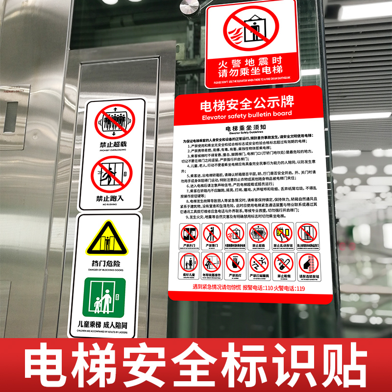 Elevator ride instructions Logo stickers Passenger elevator safety and civilization use instructions Precautions Warning signs