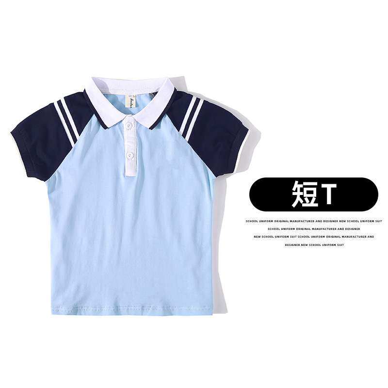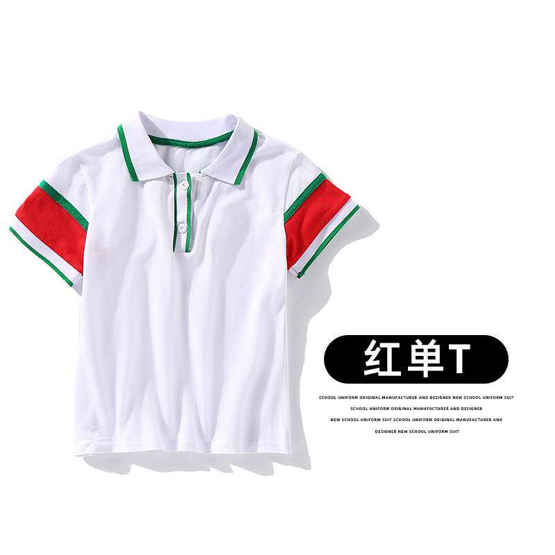 Children's all-match school uniform class uniform white long-sleeved T-shirt short-sleeved POLO shirt single stripe trousers sports casual wear