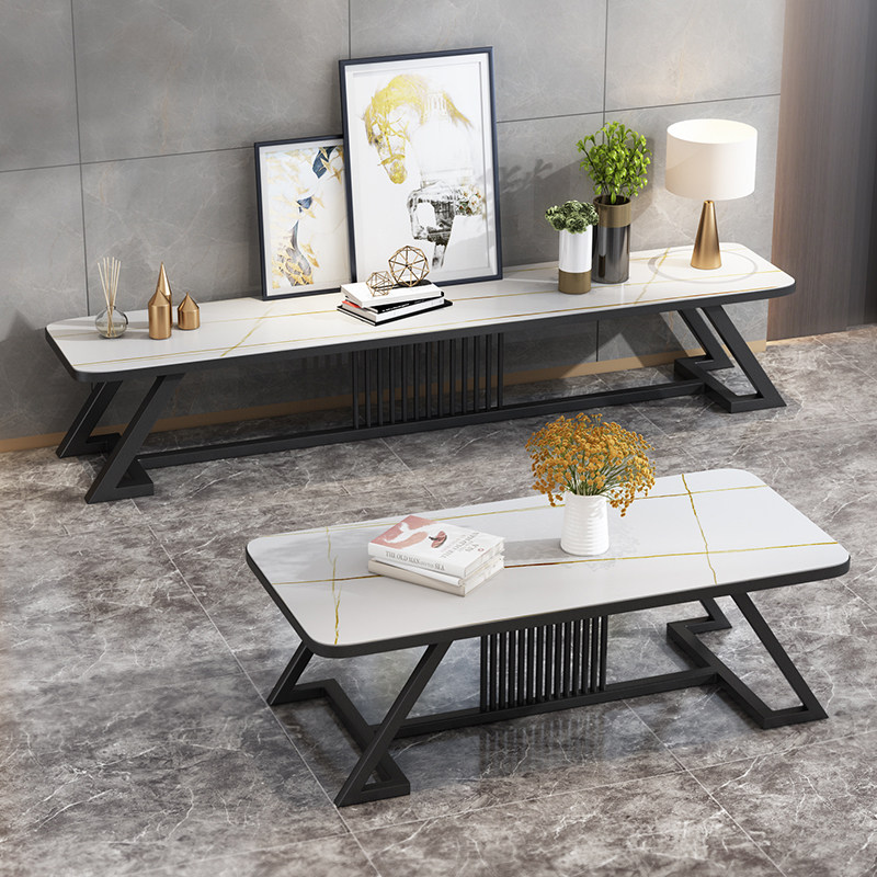 Rock Plate TV Cabinet Tea Table Composition Modern Minima Small Household Type Simple Nordic Light Lavish Living Room Extremely Minimalist Iron Art Terrace