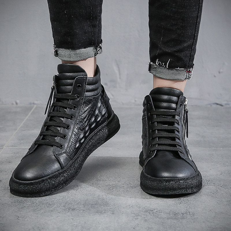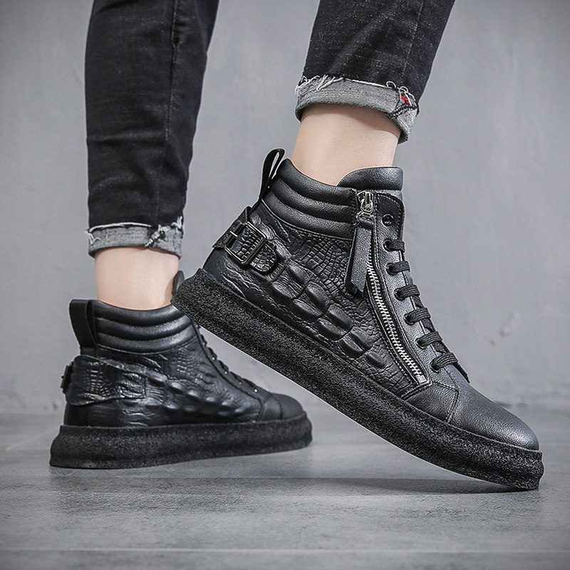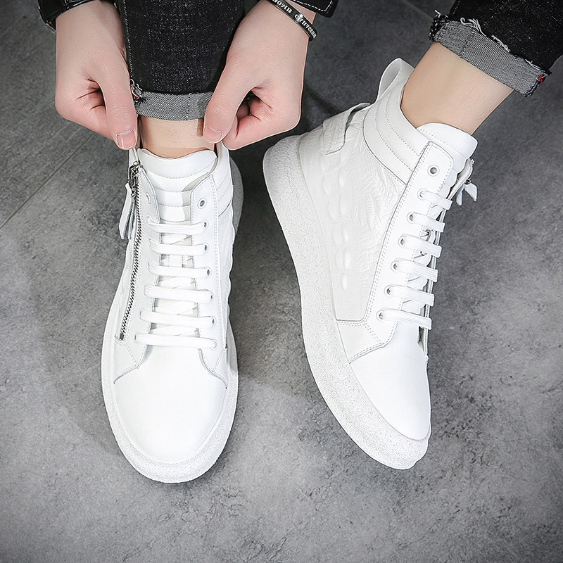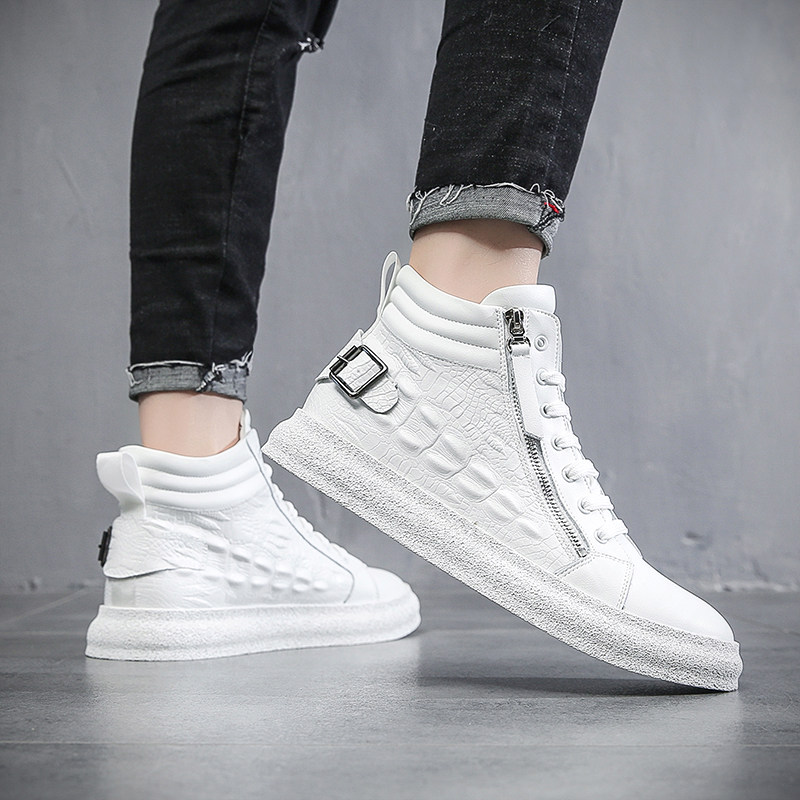 European station high-top shoes men's summer casual inner heightening small white shoes shoes youth crocodile pattern side zipper all-match sneakers