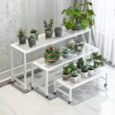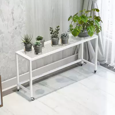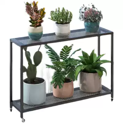 Wrought iron flower rack wheeled indoor shelf Balcony simple living room Gold Ge Floor-to-ceiling double-layer long meat basin rack