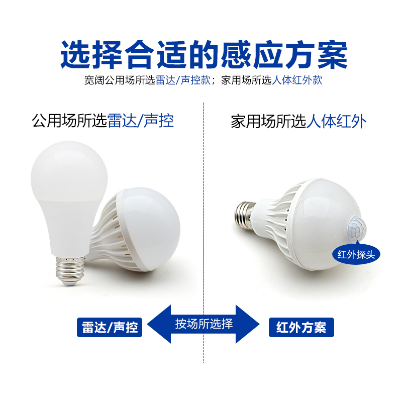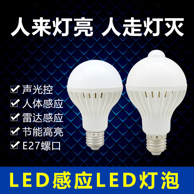 LED induction bulb intelligent voice control E27 screw mouth human body infrared radar induction ultra-bright stairway light bulb