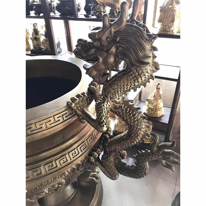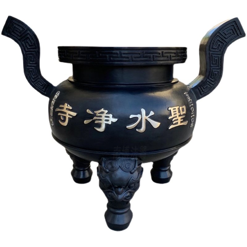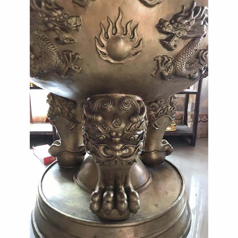 Temple Taoist Antique Round Flat Mouth Bronze Incense Stove Big Hall Front Inserted Incense Tripod Stove Cast-iron Ancestral Hall Ancestral Hall of Ancestral Hall