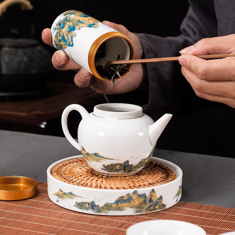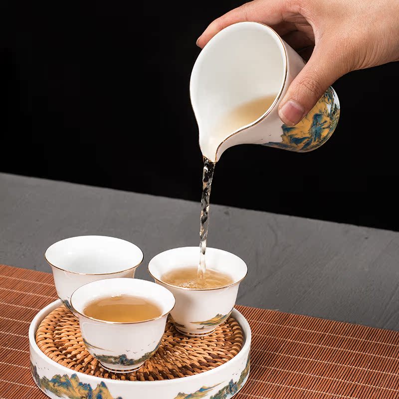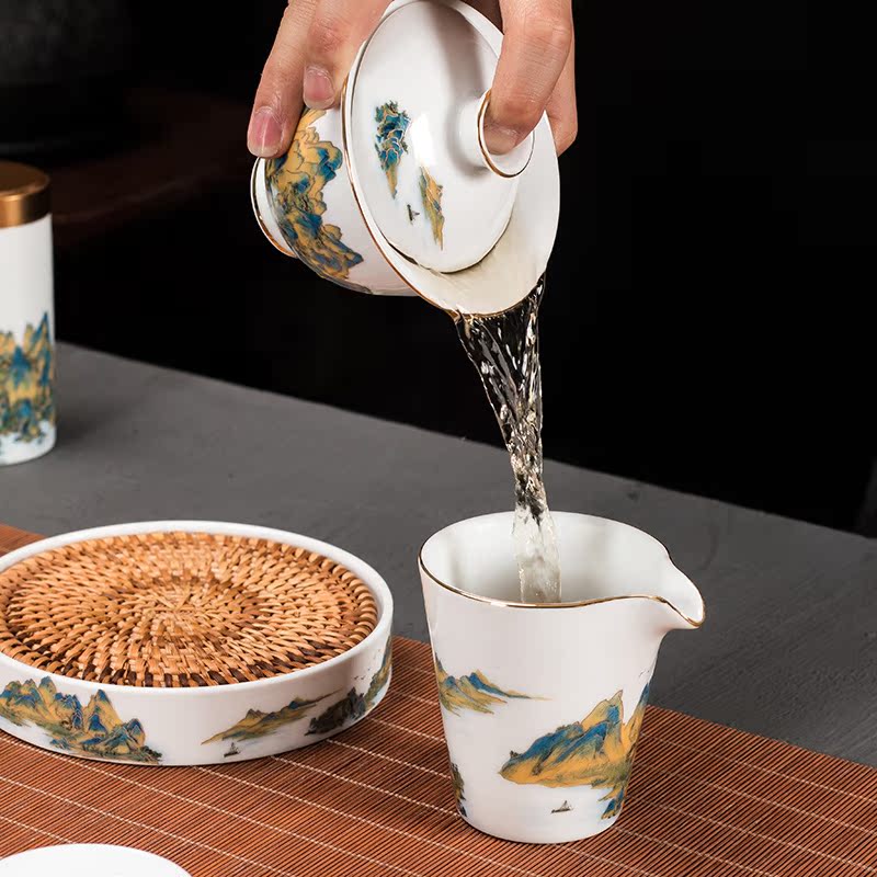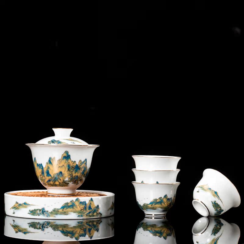 Chinese white porcelain kongfu tea furniture set group sketching three-only cover bowl minimalist tea cup ceramic teapot single upscale home