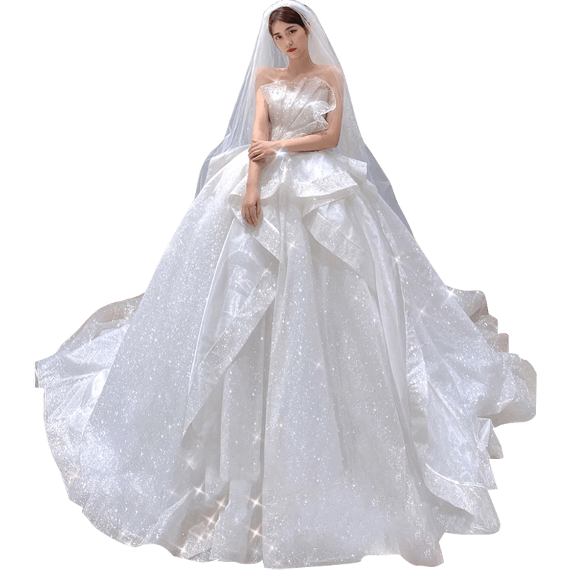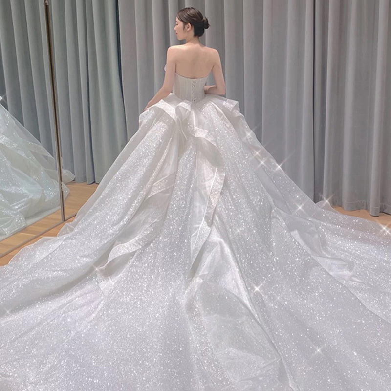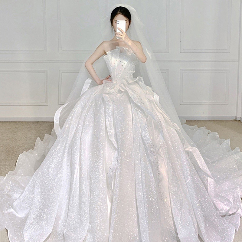 Tube top French light wedding dress 2022 new bride's main yarn dress small person going out yarn trailing high-end starry sky