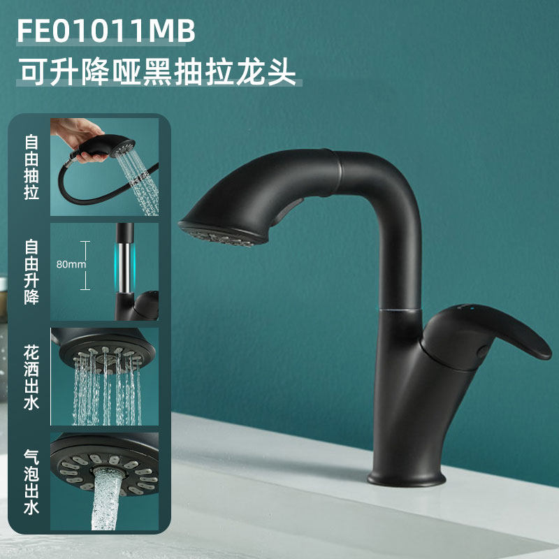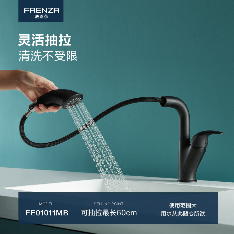 Farnsa pull-out face basin tap full copper hand wash washbasin can lift swivel hot and cold black tap