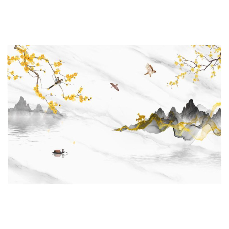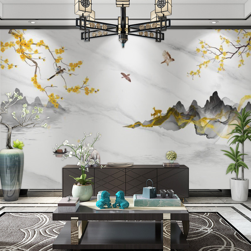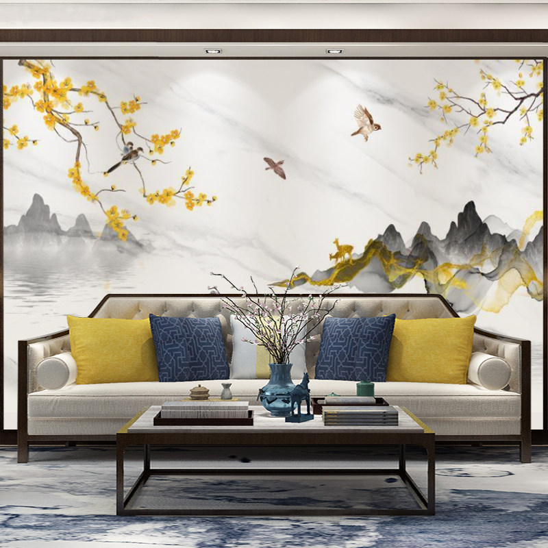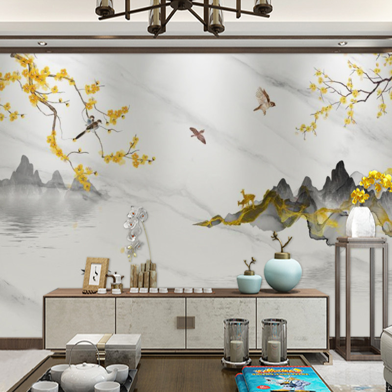 New Chinese flower and bird film and TV wall Wood and wood fibre board landscape painting Living room Bedroom integrated board TV background wall buckle plate