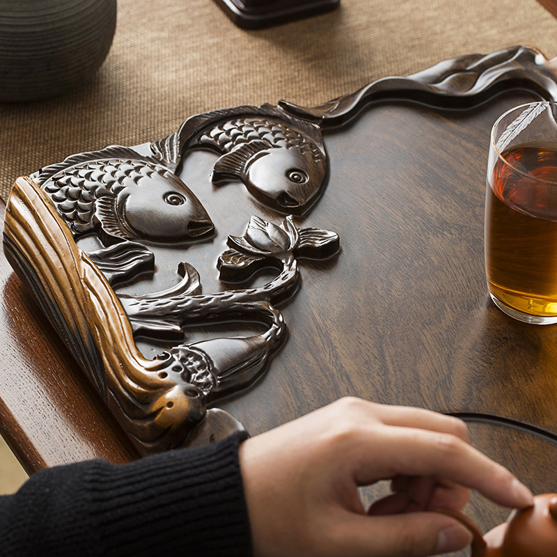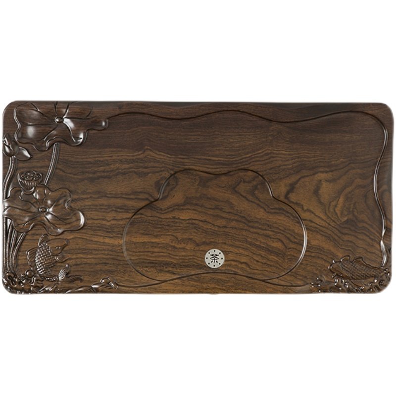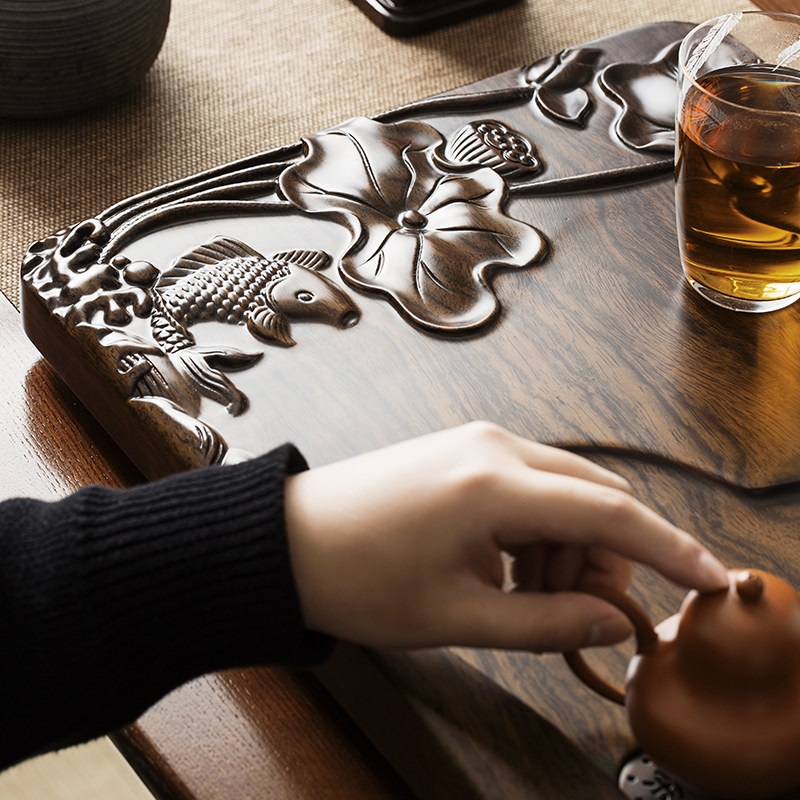 New solid wood tea tray household whole piece of ebony tea tray large size drainage Chinese red log kung fu tea set - Taobao