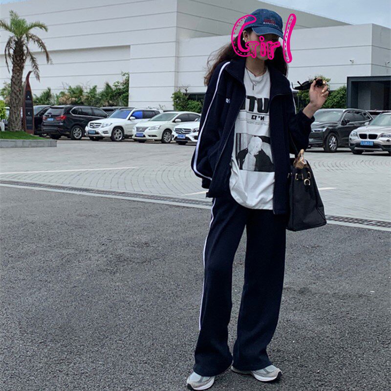 Pure Cotton Harbor Wind Sports Clothing Leisure Two Style Dress Lady Spring Autumn New Loose Korean version Student Shuai Salt Department Fried Street