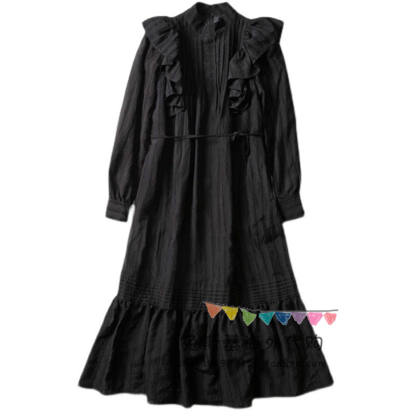 Japanese Lotus Leaf Lace Black Dress Dress Woman Spring Dress 2023 New Loose Little Black Dress-Taobao