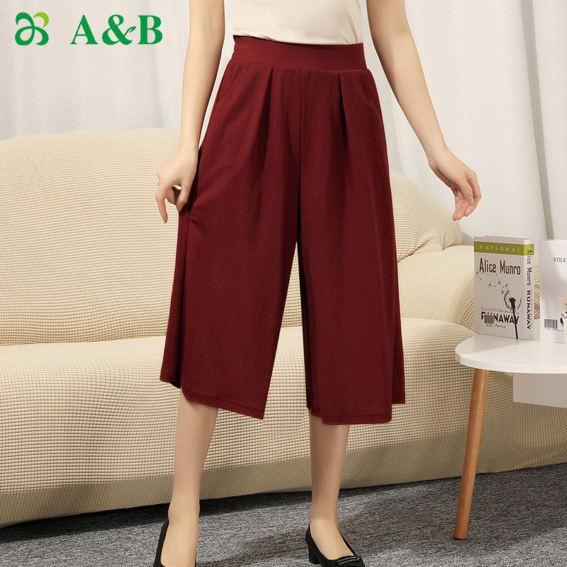 ab underwear pajamas women's thin section stretch breathable can be worn outside the home seven points culottes loose mom dress SA10
