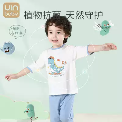 Children's pajamas set spring and summer thin quarter sleeves male and female children bamboo fiber baby baby home air conditioning clothes