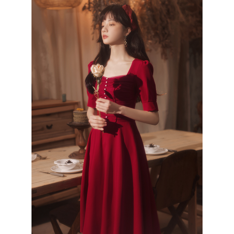 Toast to the bride The little guy is engaged in the summer and can wear the wine red temperament back to the gown dress.