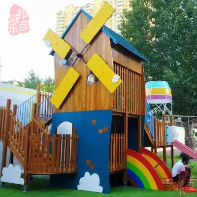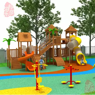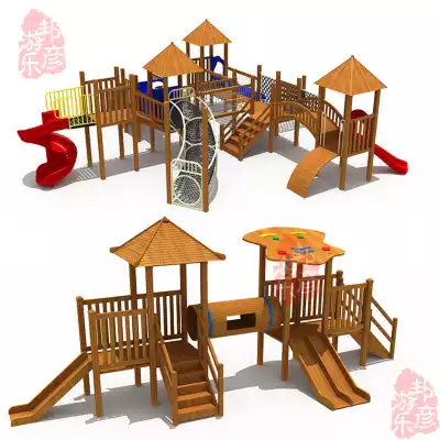 Wooden slide Little doctor combination Huanghuali children's amusement facilities Outdoor little doctor park wooden slide customization
