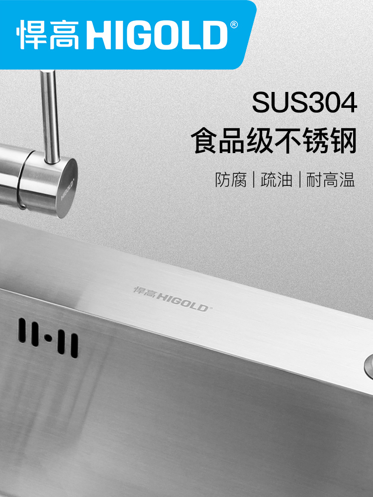 Hugo sink double-slot 304 stainless steel kitchen household sink sink hand-thickened large single-slot wash basin