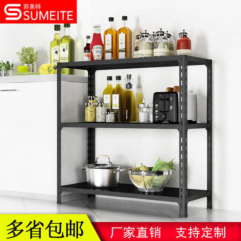 Black three-layer shelf rack multi-functional free combination storage home iron rack storage supermarket display rack