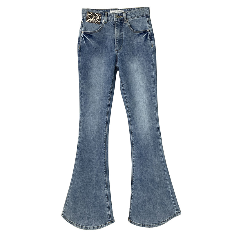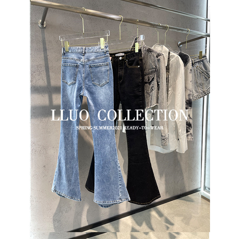 Clearance pick-up and cool fashion wear~Washed white flared round mouth jeans women's 2021 new high-waisted trousers