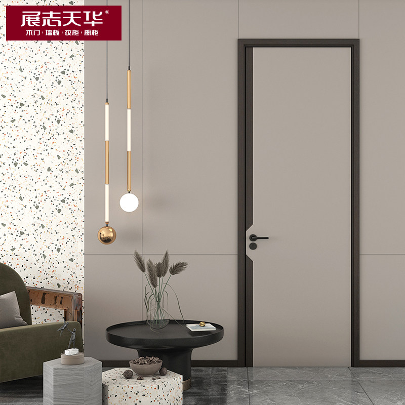 Zhan Zhi Tianhua wooden door light luxury simple solid wood composite door indoor bedroom door set door paint-free DS-016WT