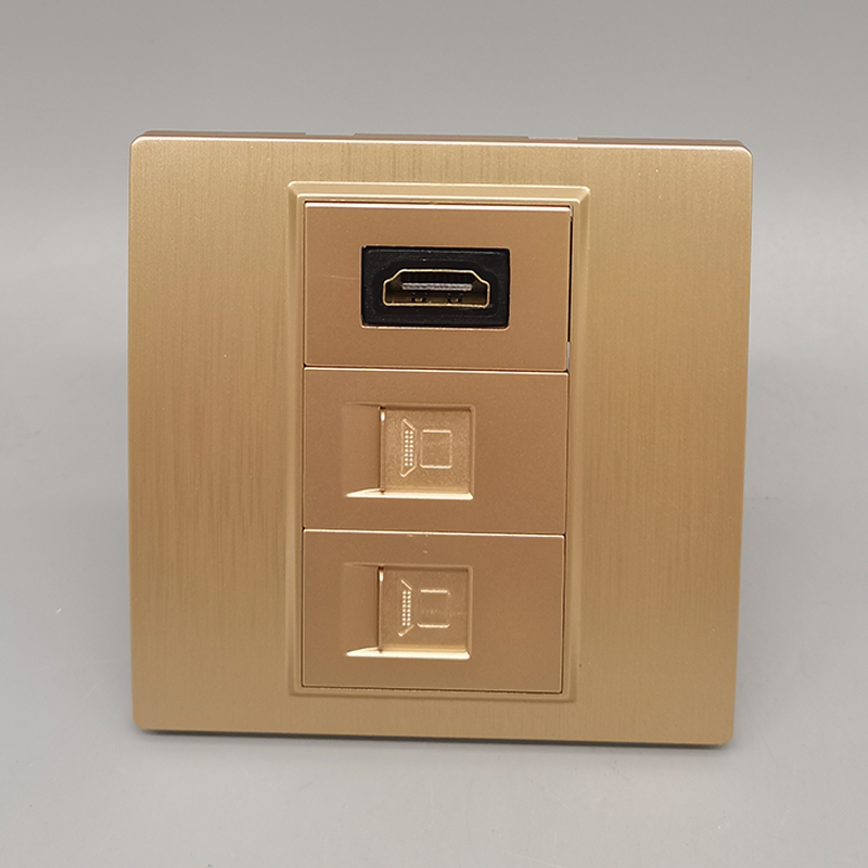 Brushed gold 86 panel dual-port six-category network gigabit network cable CAT6 broadband HDMI high-definition TV RJ45 network