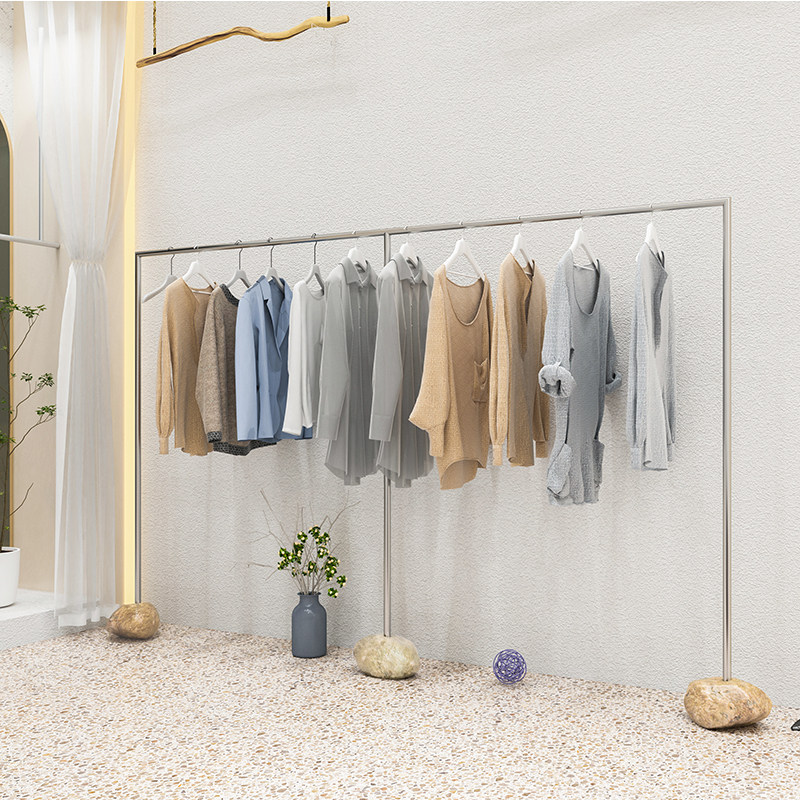 Northern Europe light luxury clothing store dedicated floor-to-ground stone creative hanging frame stainless steel clothing frame