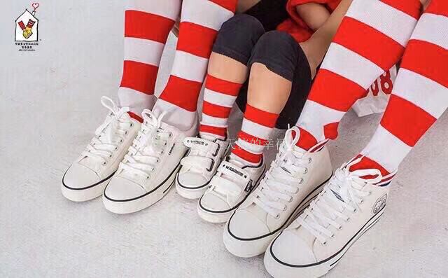 Uncle McDonald's runs for Ai Mai, parent-child cute socks, red and white striped socks, adult four seasons