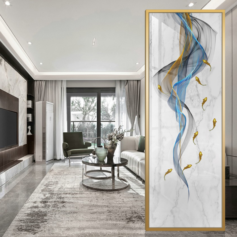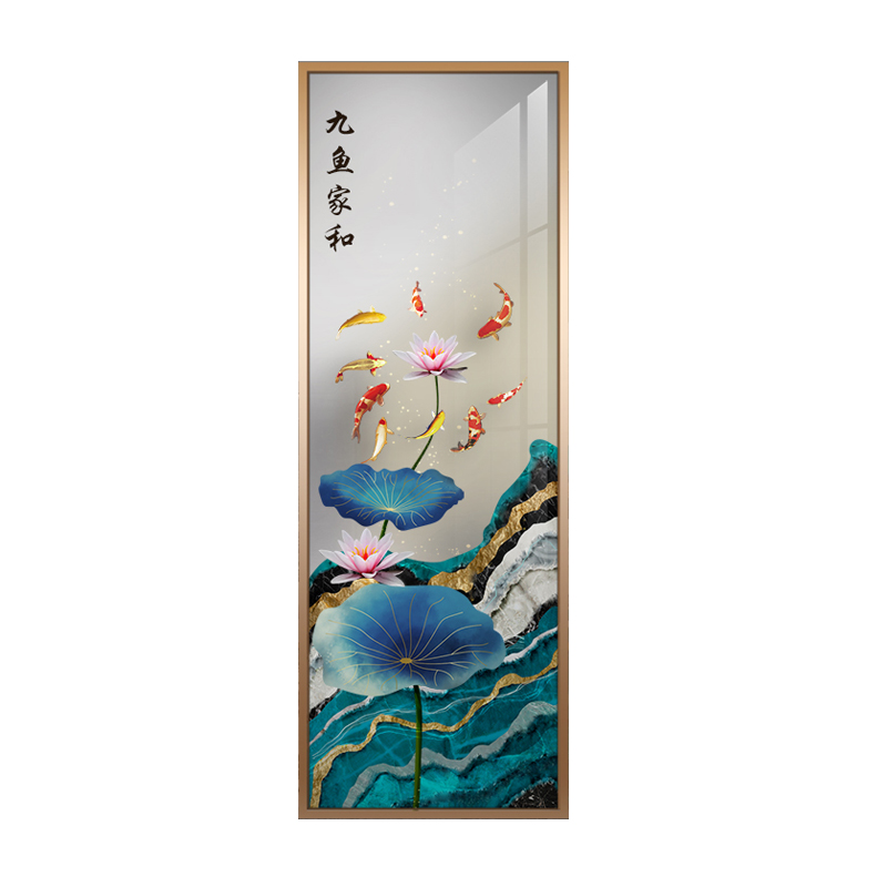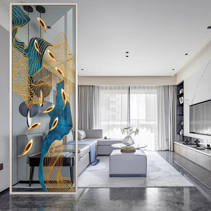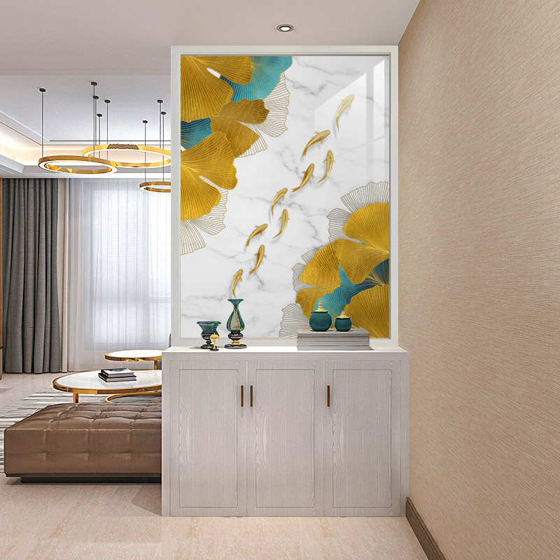 Nine Fish Figure Art Glass Custom Living Room Entrance Home Decoration Screen Wall Tempered Frosted Translucent Process Partition