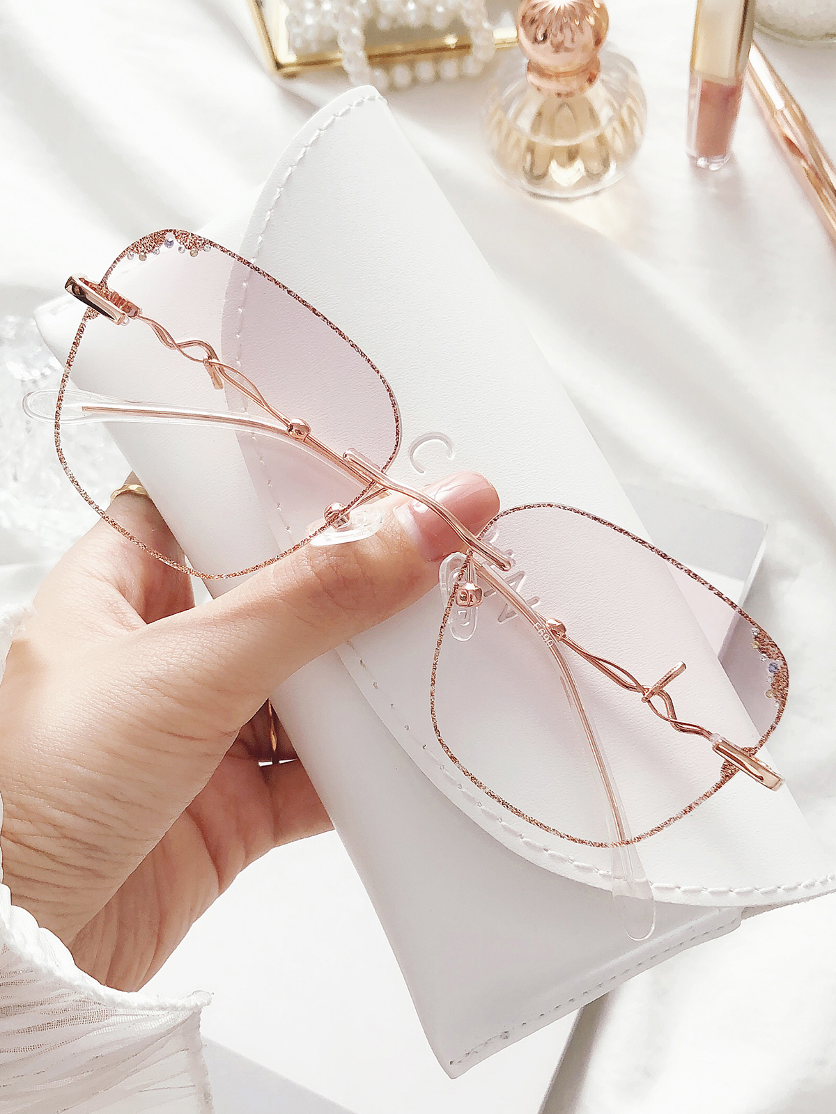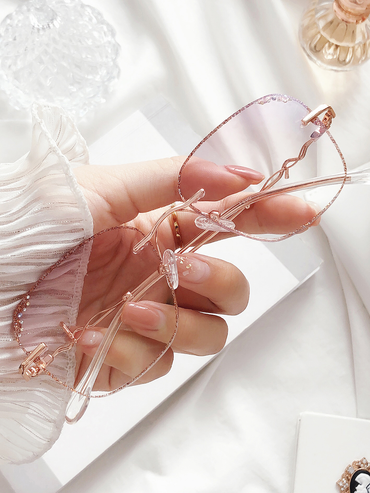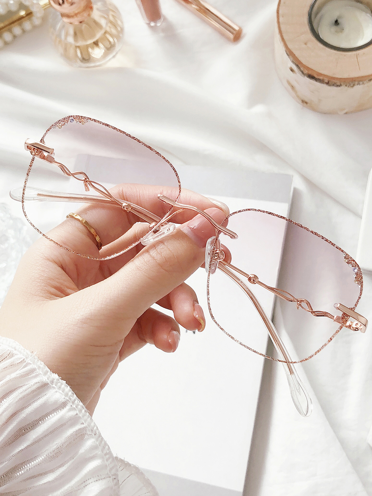 Frameless myopia glasses women's finished finished diamond cut edge discoloration astigmatism can be matched with degrees with borderless eyes ultra-light