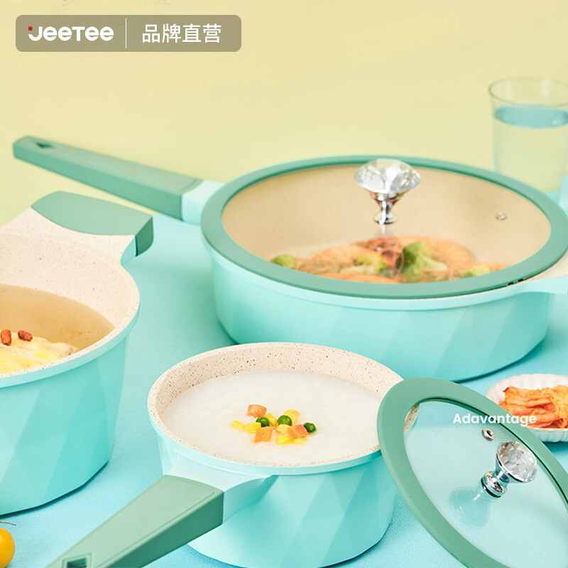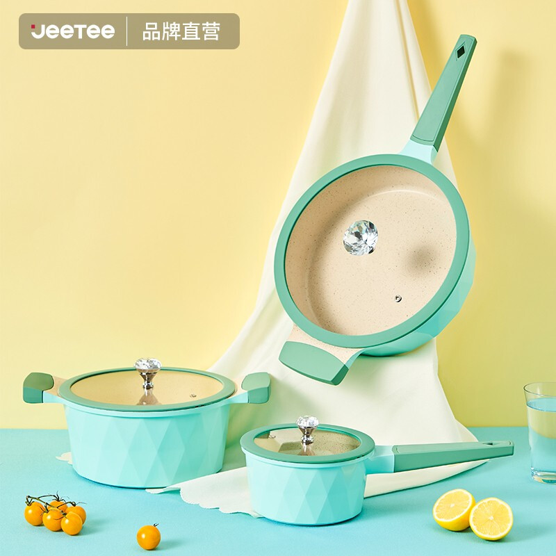 Jeetee diamond series pot set non-stick frying pan soup pot milk pot three-piece set open fire induction cooker universal