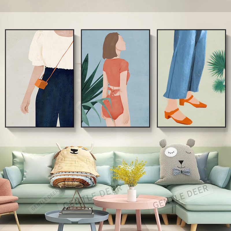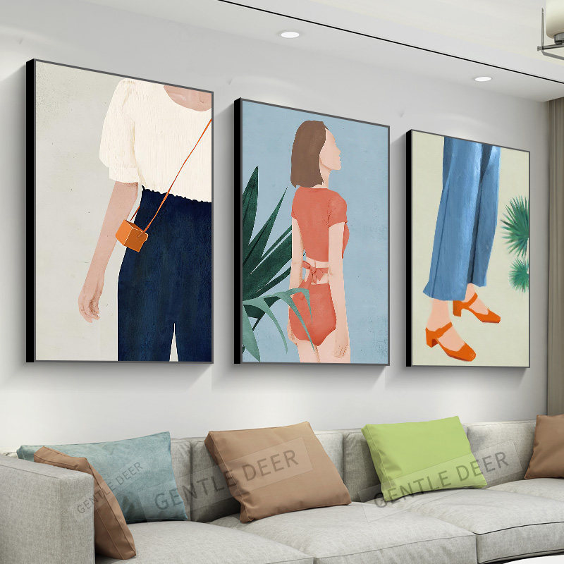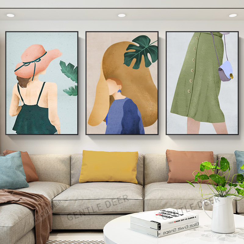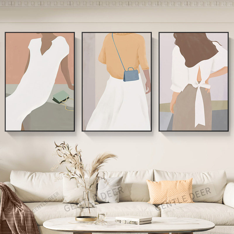 ins beauties clothing shop decoration painting modern minimalist living-room sofa background wall hanging painting morandi triptych mural