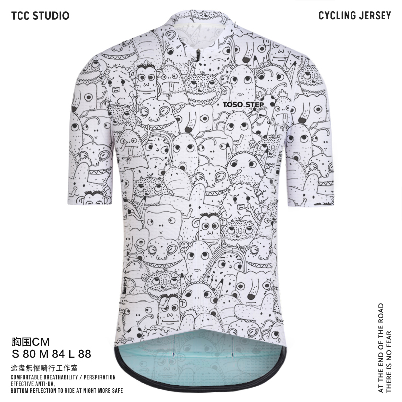 TOSO STEP Summer White Cartoon Version Short Sleeve Monster Set Riding road car Hygroscopic Perspiration Blouse