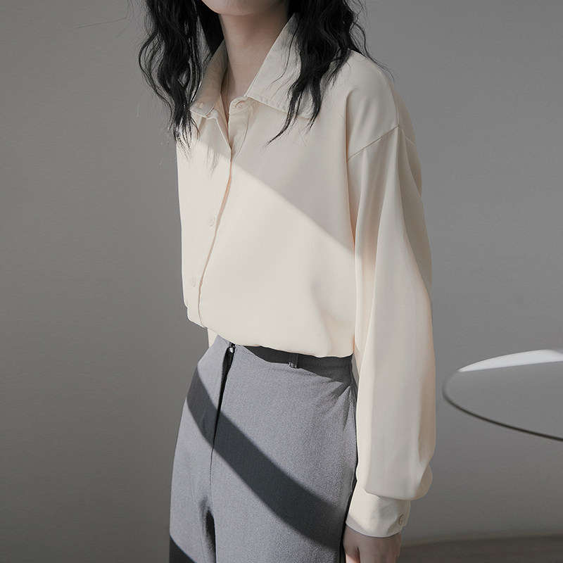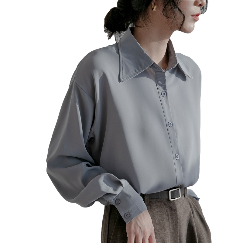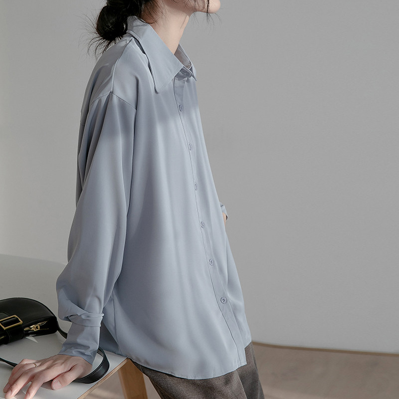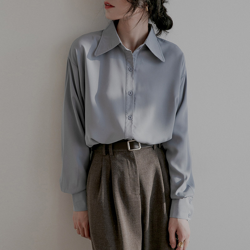Dituton salt blue chiffon long-sleeved shirt women's spring and autumn retro Hong Kong flavor loose all-match design niche shirt