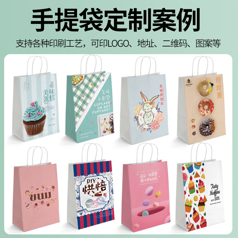 Kraft paper bag handbag baked milk tea delivery bag food drink fast food packaging bag logo customization