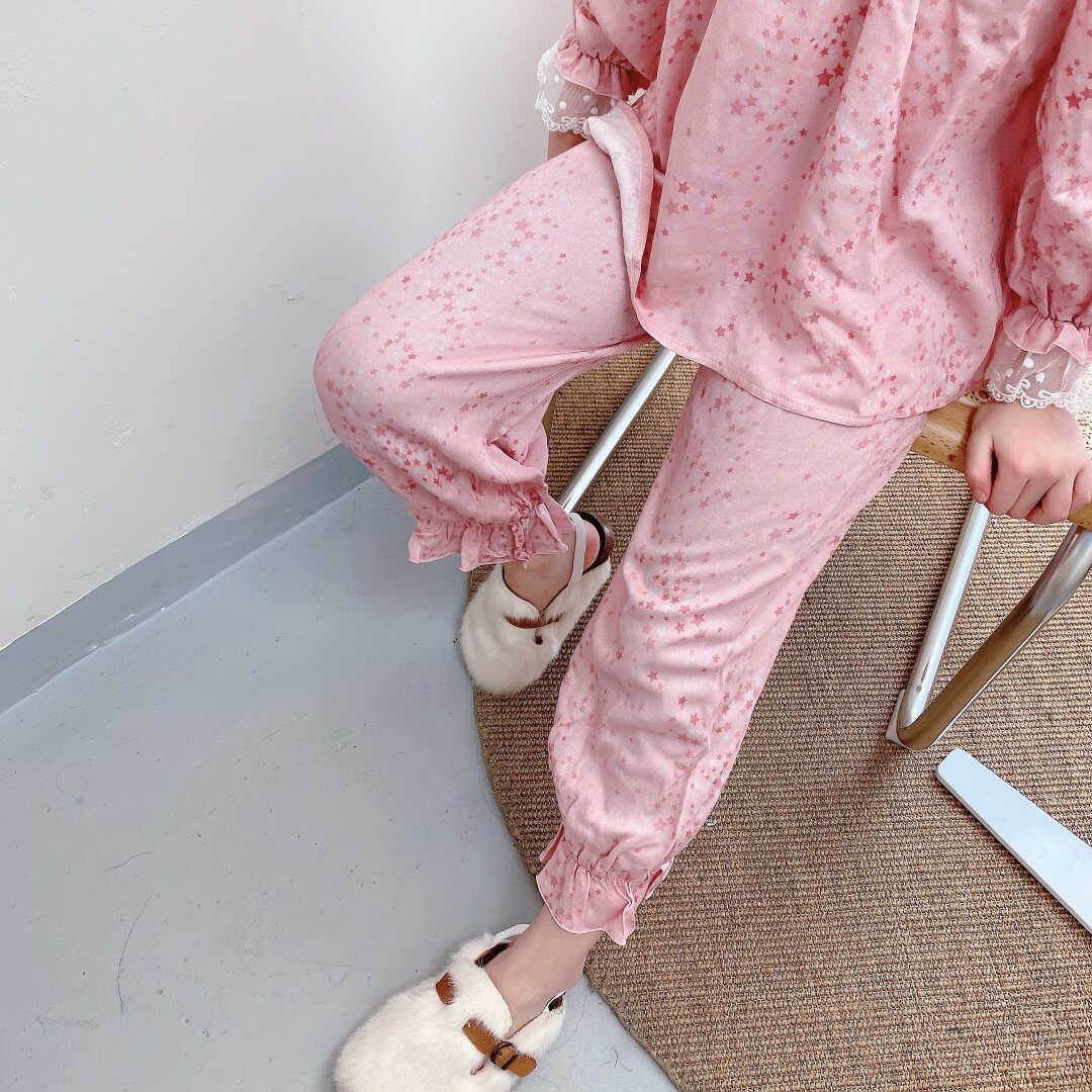Girl Cream Pink Stars Home Suit Children Pure Cotton Comfort Sleeping Pants Princess Wind Long Sleeve Sleeping Skirt