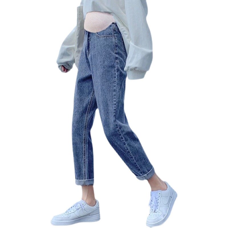 Pregnant women jeans spring and autumn models small fashion outer wear inner pants large size belly support straight pants autumn and winter plus velvet