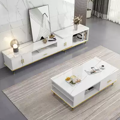 TV cabinet coffee table combination Modern simple household small apartment light luxury wind retractable living room rock panel TV cabinet