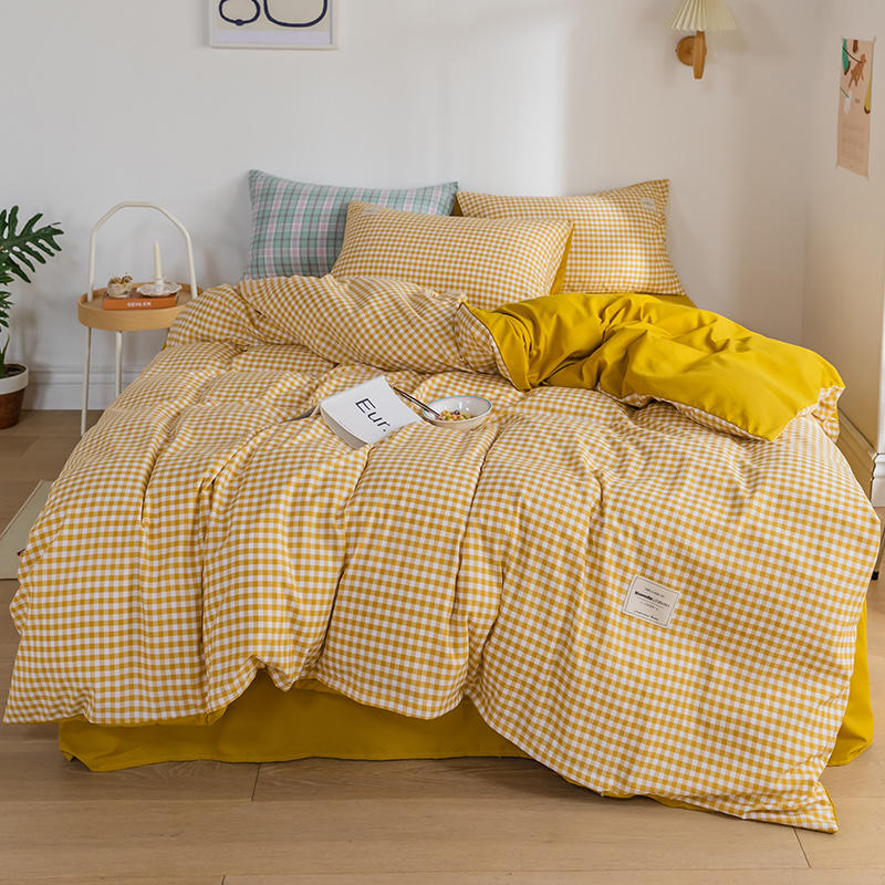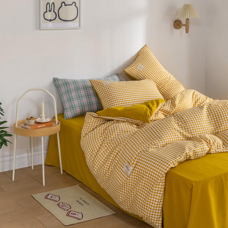 Japanese-style Fengshui washed cotton bedding four-piece set ins Nordic simple quilt cover bed sheet three-piece bed sheet 4 pieces