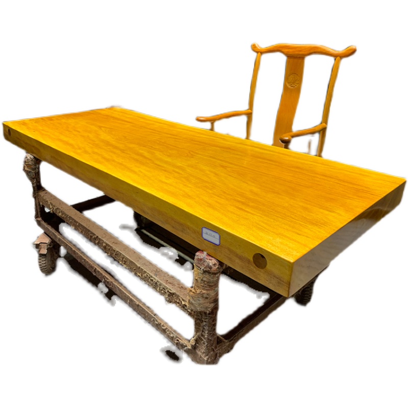 Huanghuali solid wood large board tea table and chair combination Log dining table Solid wood whole book tea table office180-76-10