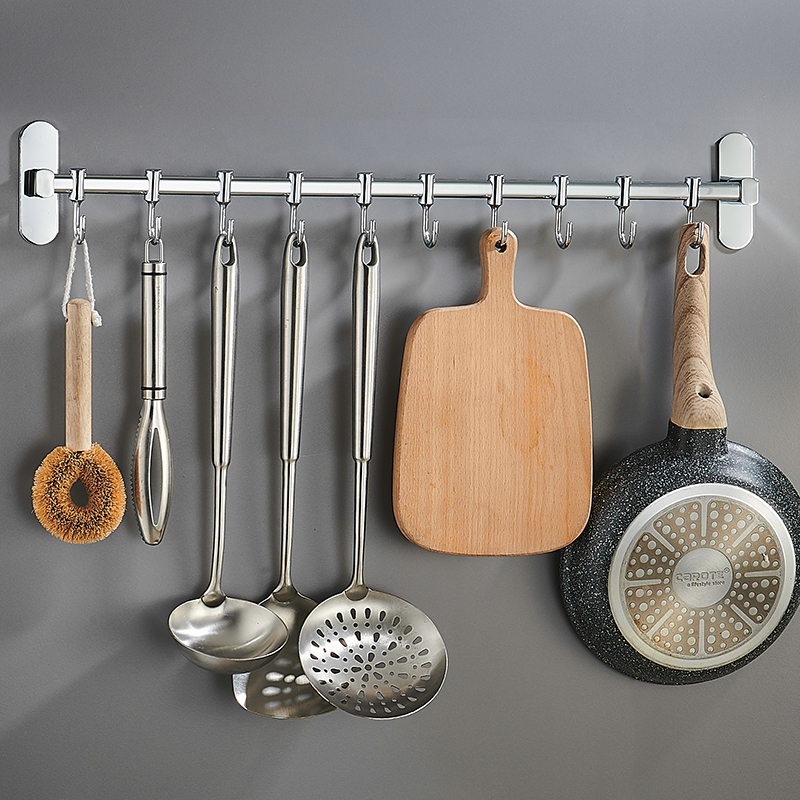 Stainless steel kitchen shelves no-punch wall hanging Home wall hook rack feature kitchenware supplies hanging pole hanger
