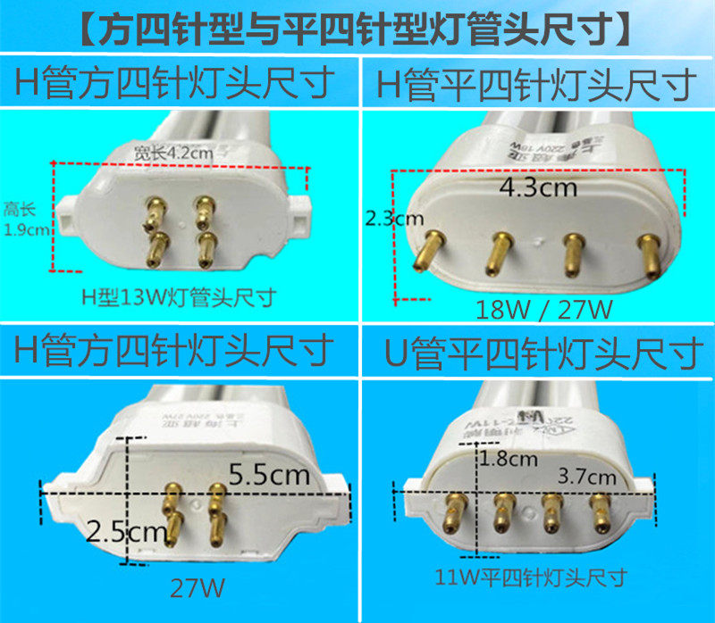 White light 13WH-shaped square four-pin eye protection lamp white light 11WU-shaped flat four-pin lamp tube lengthened white light 11WU-shaped flat four-pin eye protection lamp white light 27WH-shaped flat four-pin eye protection