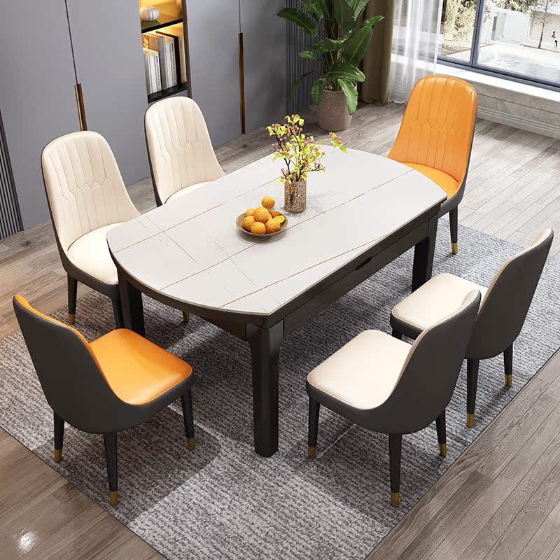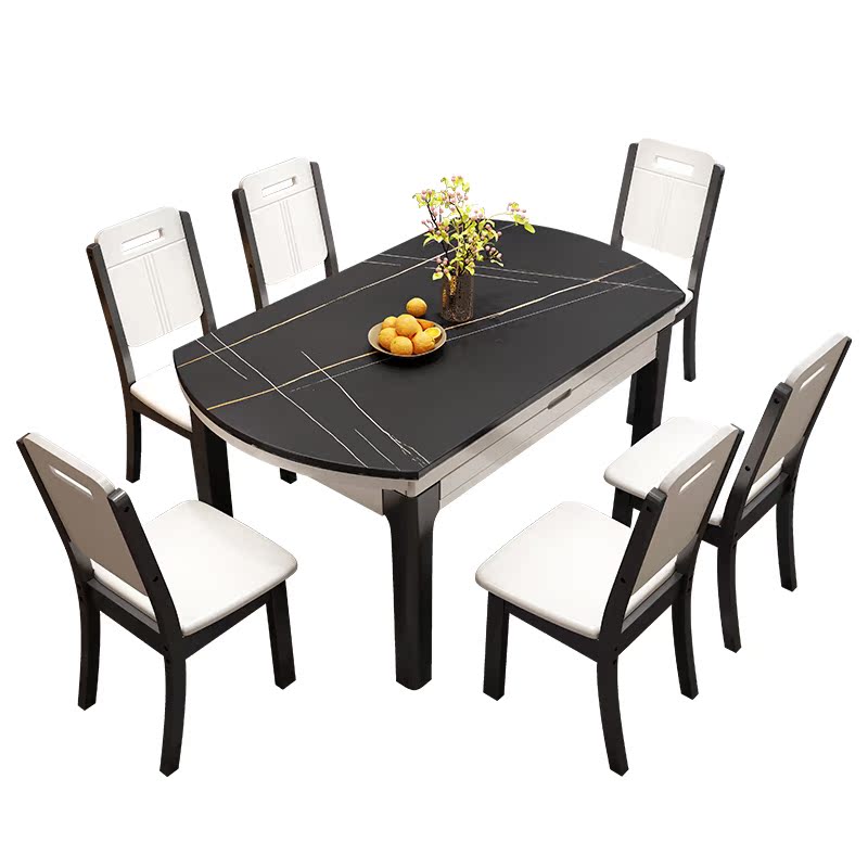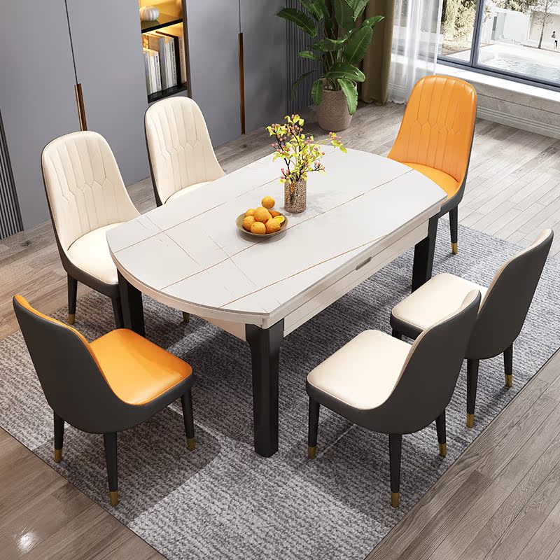 Light extravagant rock plate table with telescopic marble dining table and chairs combined modern minimalist folding rice table household small family type