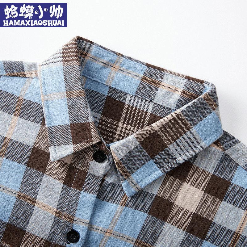 Boy Shirt Summer 2022 New Spring Summer Boy Plaid Shirt Pure Cotton Slim Big Boy Handsome Gas Shirt