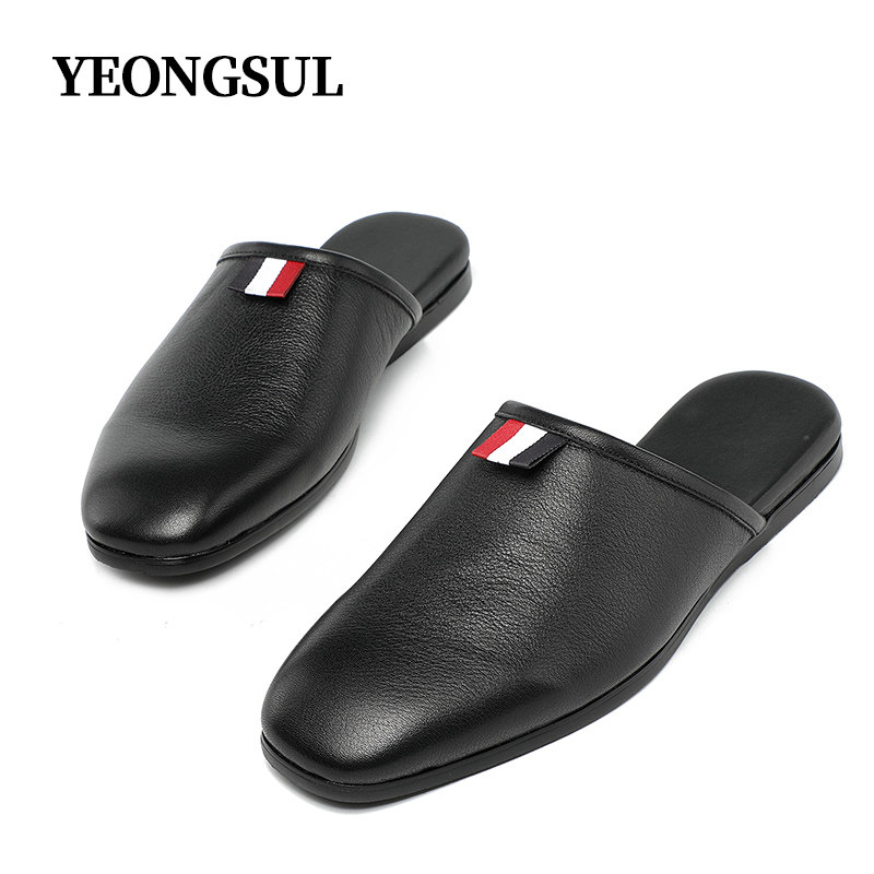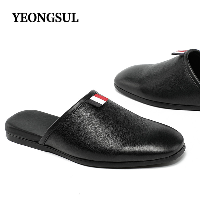 YEONGSUL English slippers men's leather Baotou half drag British style handmade casual breathable all-match sandals